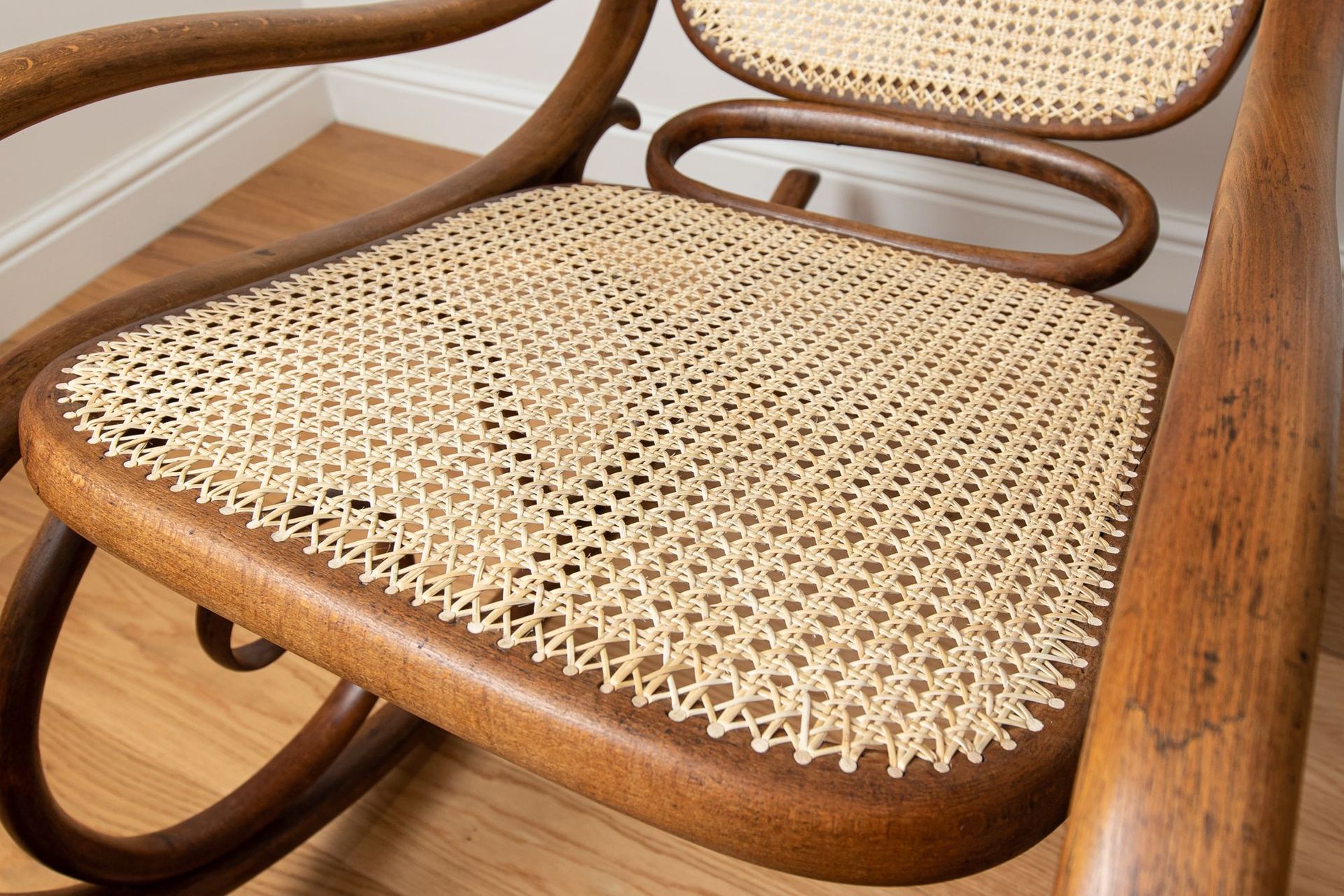 This rocking chair needed the back panel to be French (blind) caned as the rear spline was too damaged to remove. This meant each individual strand had to be cut to length and glued at both ends.