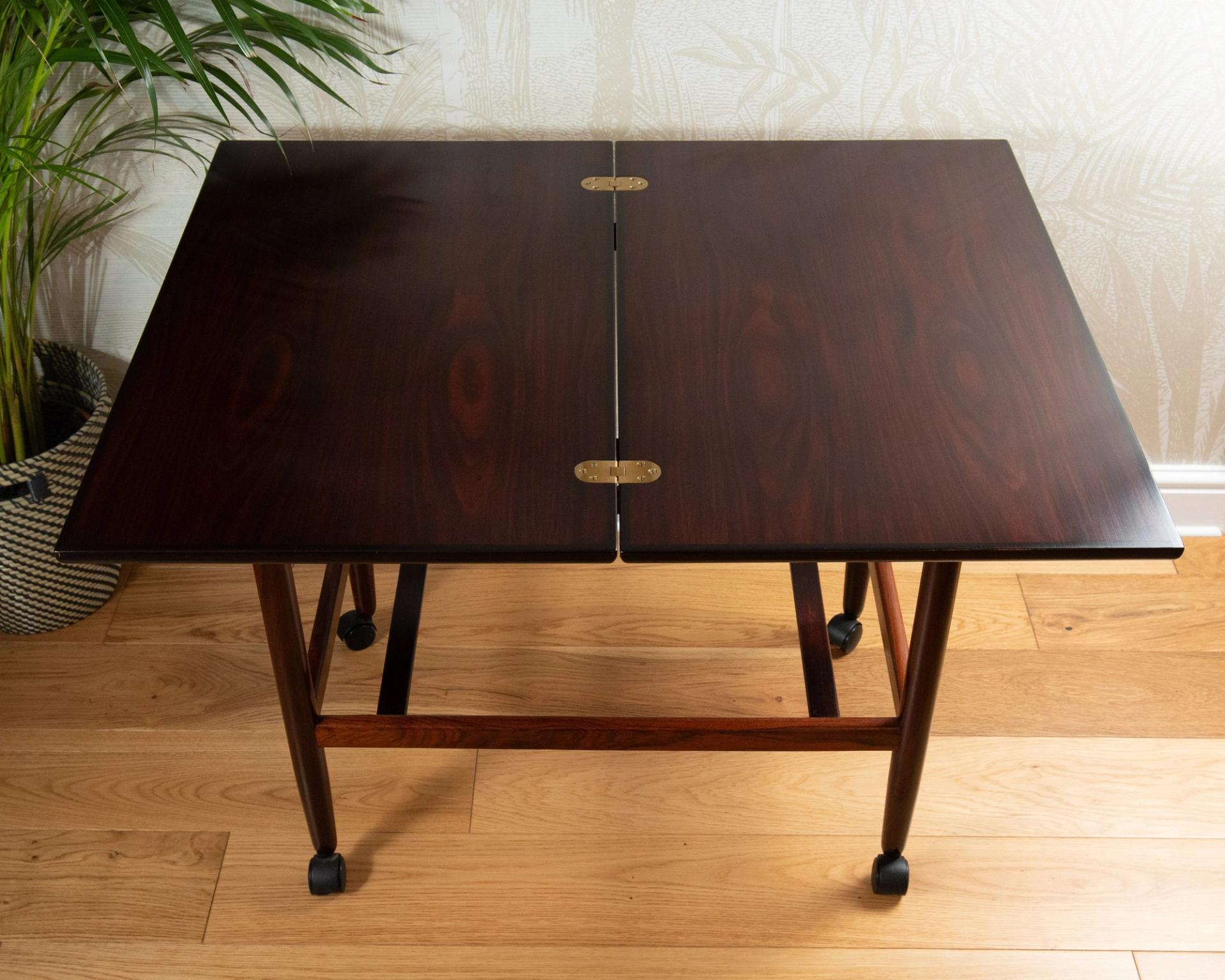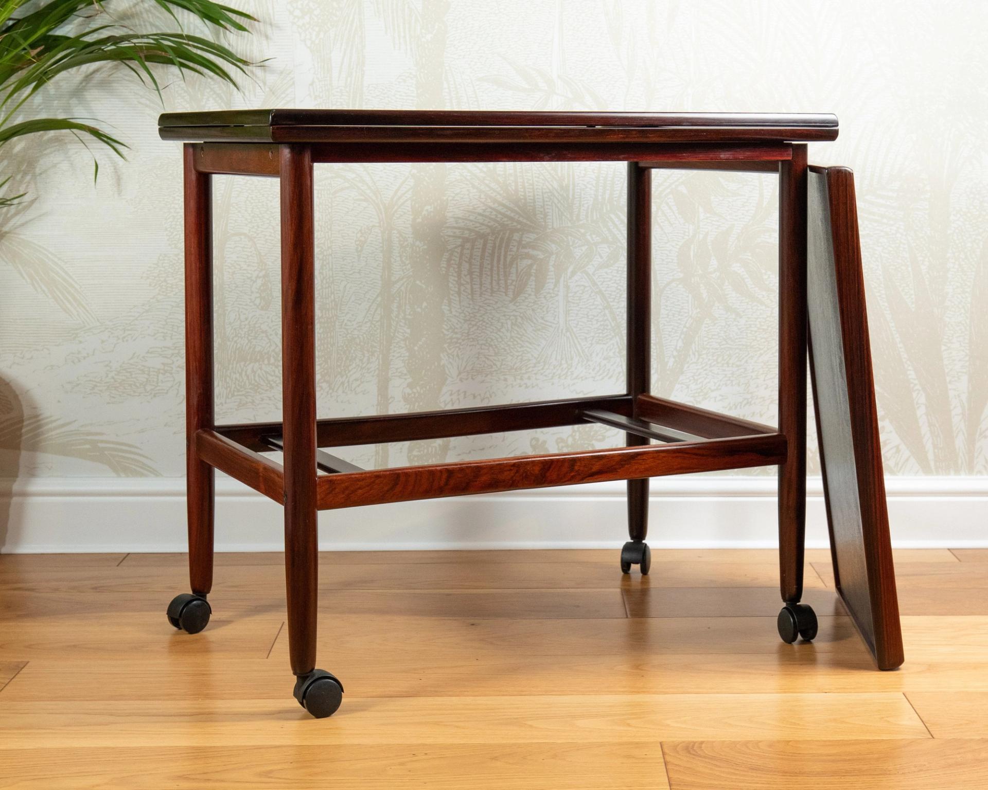 Danish MCM Grete Jalk Rosewood Flip Flop Expandable Drinks Trolley
