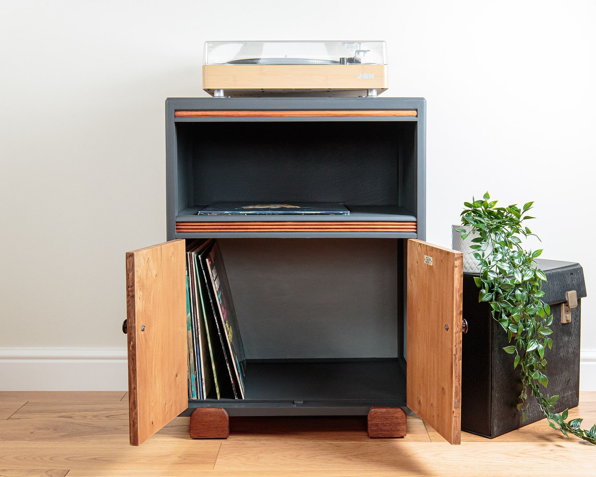A fully refurbished Mid-Century, 'Tenax' Record Cabinet by Freedlands Ltd, painted in 'Ash' by Fusion Mineral Paint.