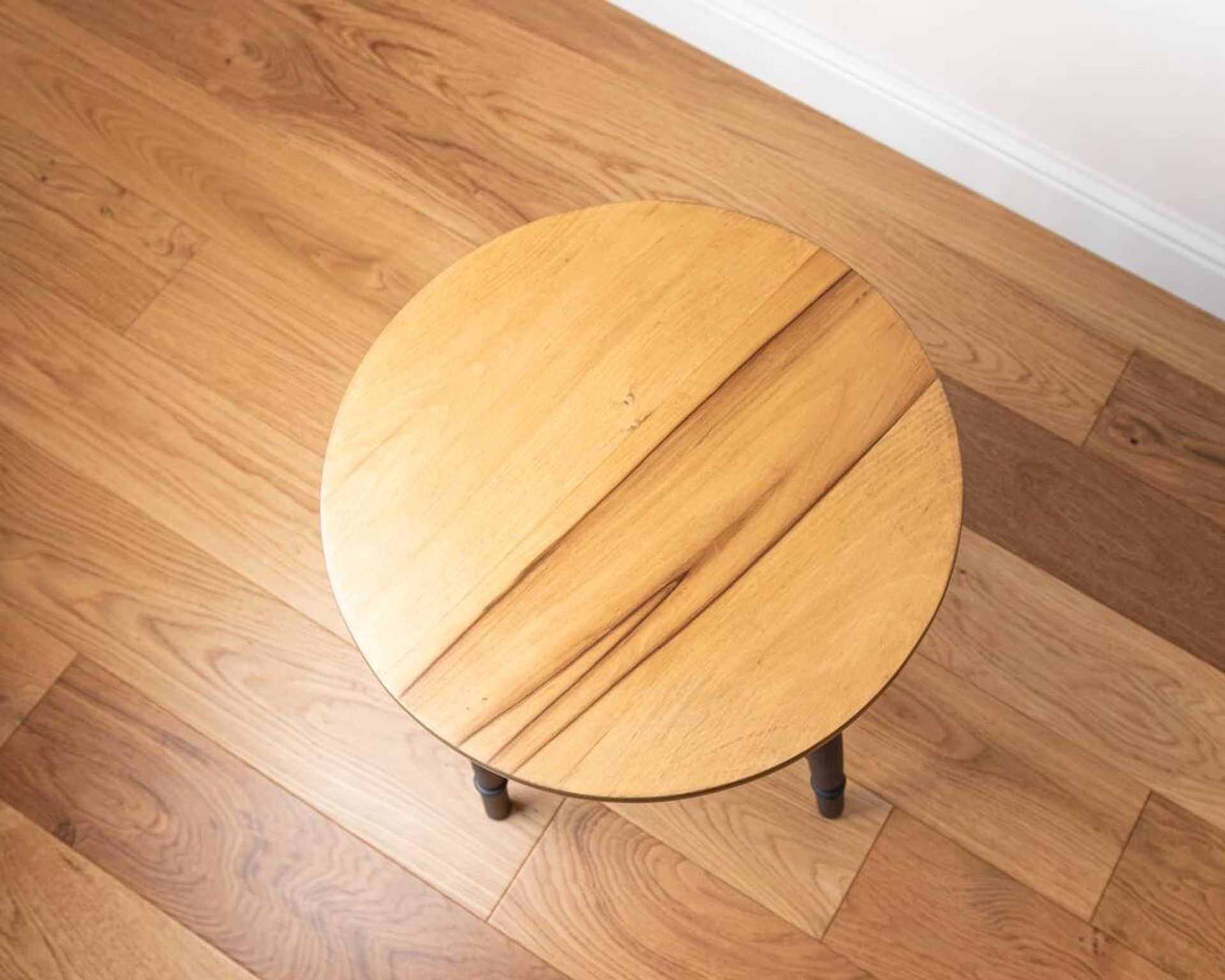 This vintage oak coffee table has had it's top stripped back to reveal the beautiful woodgrain which has then been resealed with hard wax oil for lasting durable protection. The edge is detailed in a brass enamel paint giving a lovely shine.