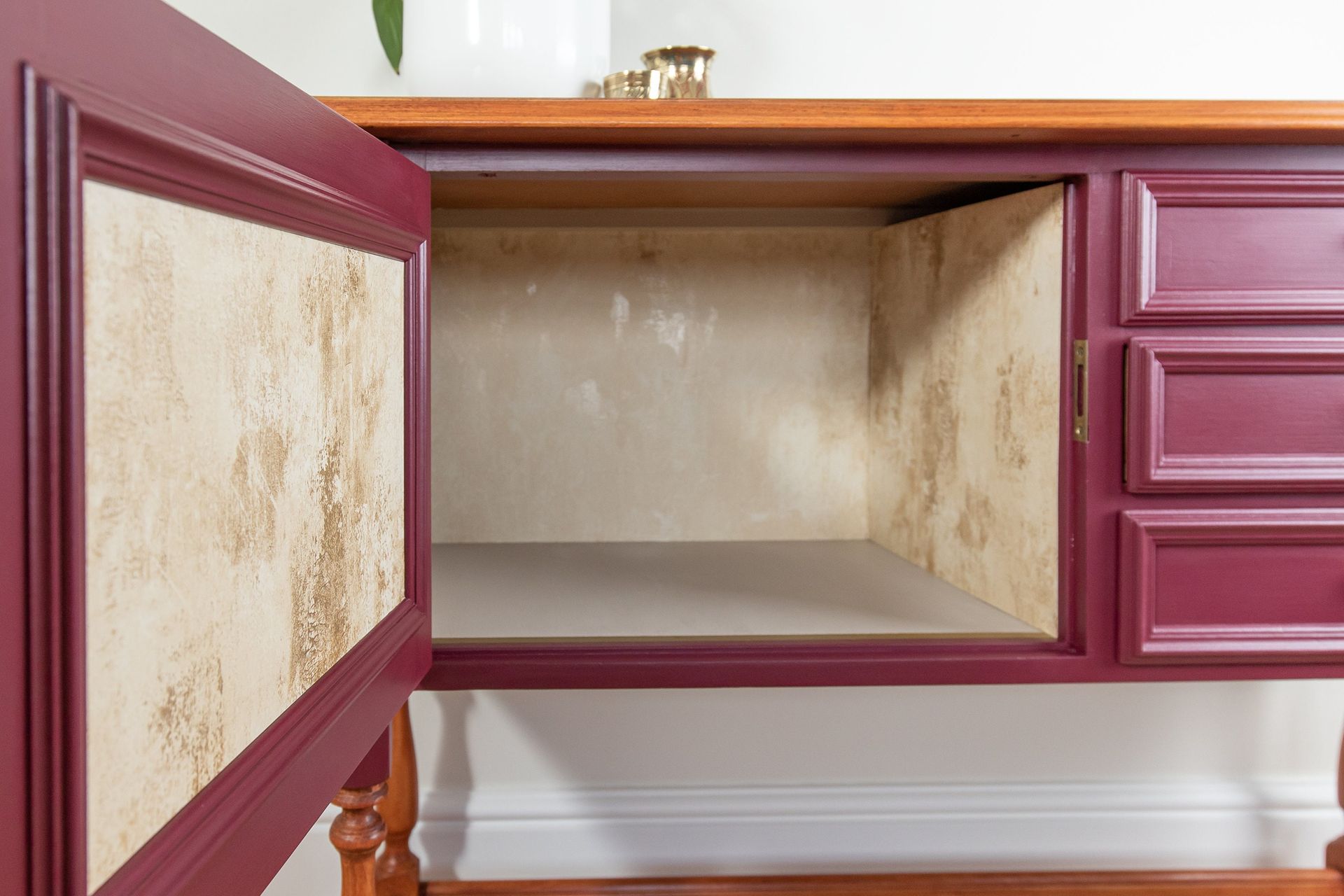 A versatile little unit that can be used as sideoard in a small space or an entryway console cabinet.